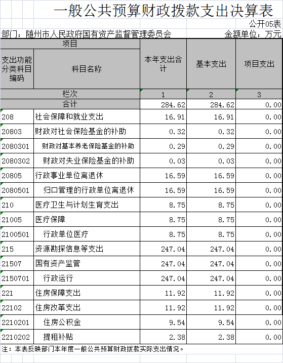 5.一般公共預算財政撥款支出決算表(公開05表)