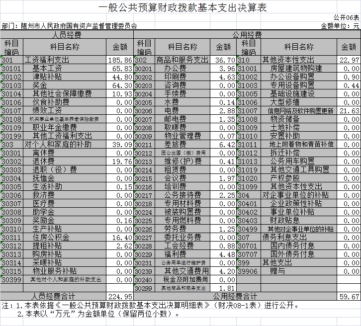 6.一般公共預算財政撥款基本支出決算表(公開06表)