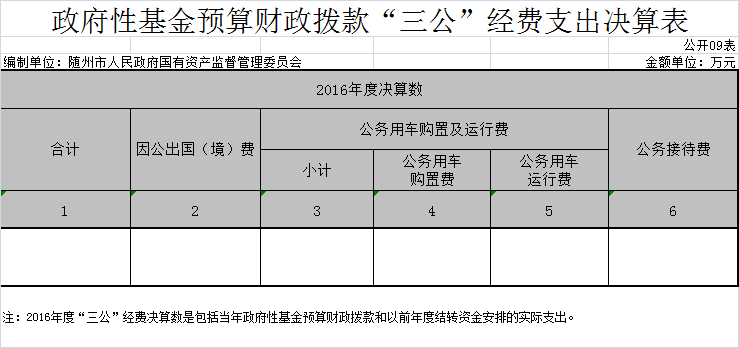 (九)政府性基金預算財政撥款“三公”經費支出決算表(公開09表)