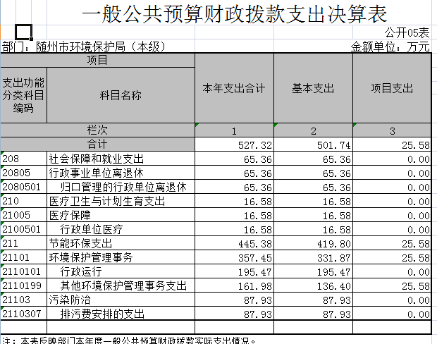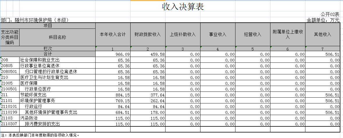 2016年決算收入合計966.09萬元,財政撥款收入459.58萬元。決算支出合計563.38萬元(基本支出501.74萬元,項目支出61.64萬元),其中行政運行195.47萬元,其他環(huán)境保護事務支出198.04萬元,社會保障及離退休65.36萬元,行政單位醫(yī)療16.58萬元,污染防治支出87.93萬元。