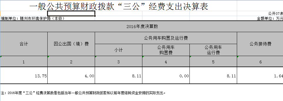 2016年,我局預算單位“三公”經費公共預算財政撥款支出13.75萬元,其中:公務用車運行維護費8.11萬元,公務接待費1.64萬元,公務接待30批次220余人,比2015年下降,減少原因是嚴格控制“三公”經費支出。