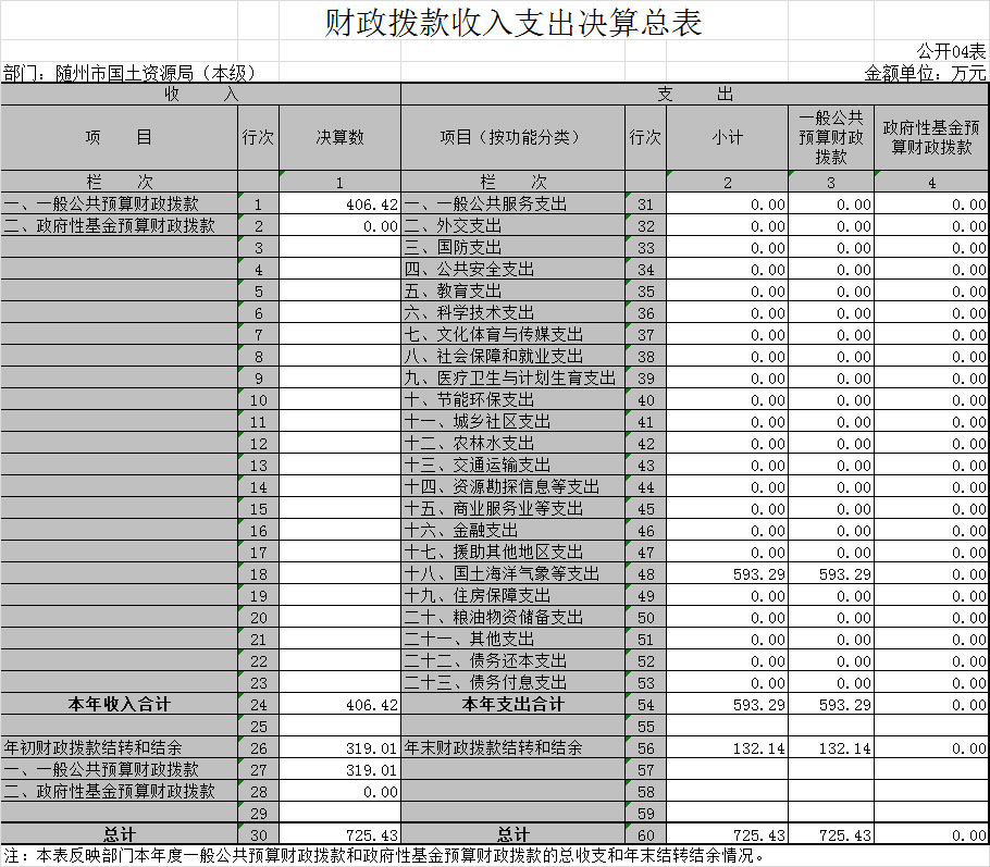 四、財(cái)政撥款收入支出決算總表