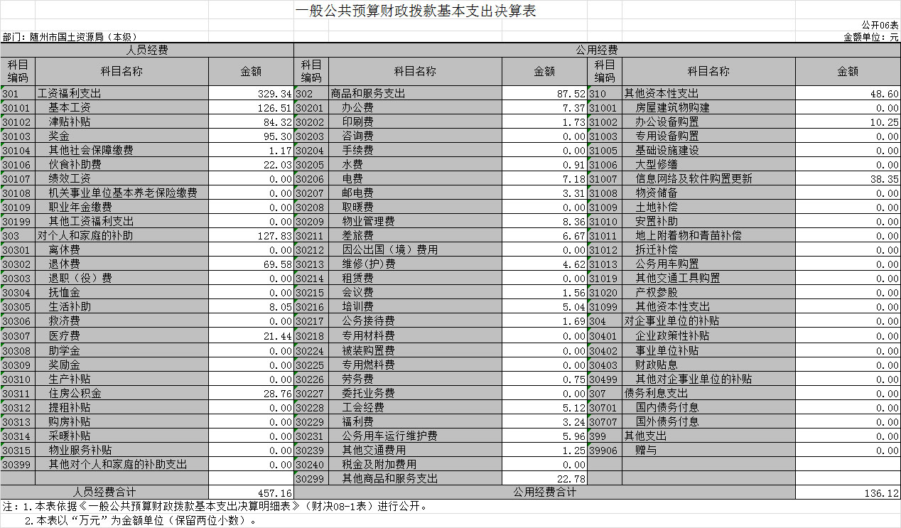六、一般公共預(yù)算財(cái)政撥款基本支出決算表