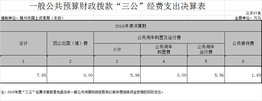 七、一般公共預(yù)算財(cái)政撥款“三公”經(jīng)費(fèi)支出決算表