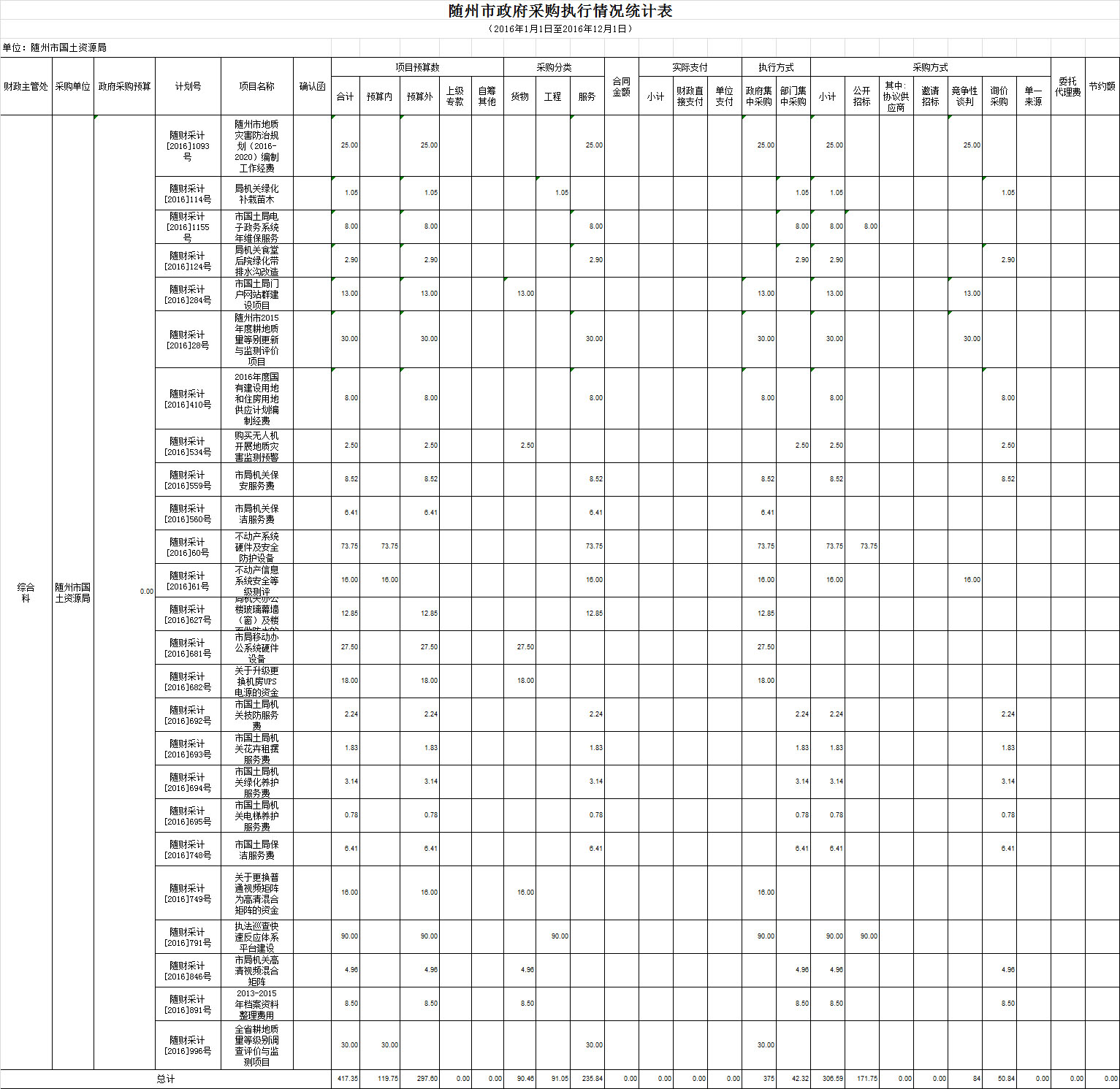 本部門2016年度執(zhí)行政府采購(gòu)支出總額417.35萬(wàn)元,其中:政府采購(gòu)貨物支出90.46萬(wàn)元、政府采購(gòu)工程類支出91.05萬(wàn)元,政府采購(gòu)服務(wù)