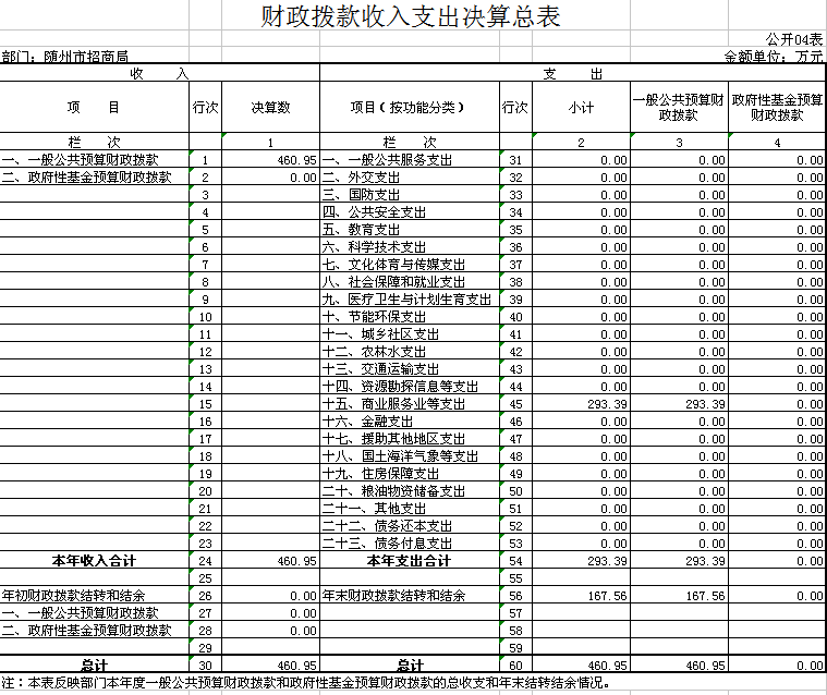 2016年度財政撥款收入支出總計460.95萬元,與上年相比增加198.94萬元,主要原因一是167.56萬元項目結余;二是2016年招商活動增加。