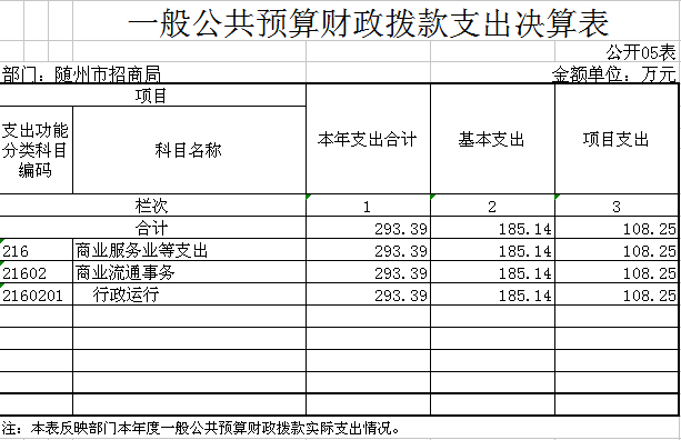2016年度一般公共預算財政撥款支出決算293.39萬元,與上年相比增加31.38萬元,主要原因是招商活動增加。其中:基本支出185.14萬元,項目支出108.25萬元。