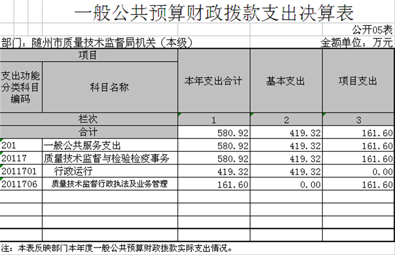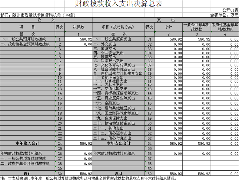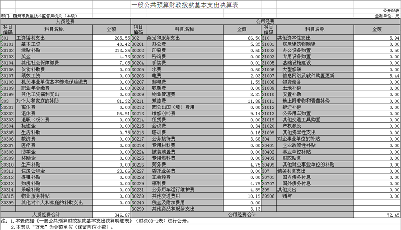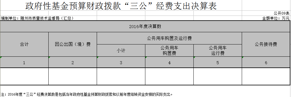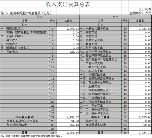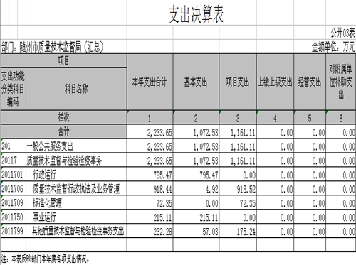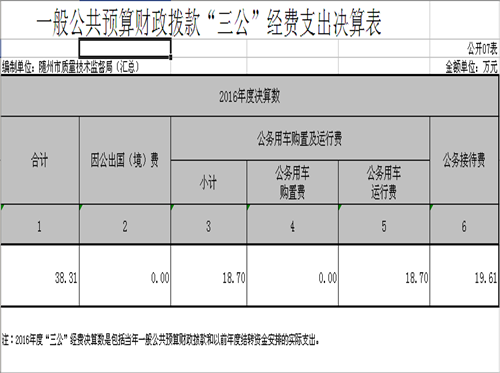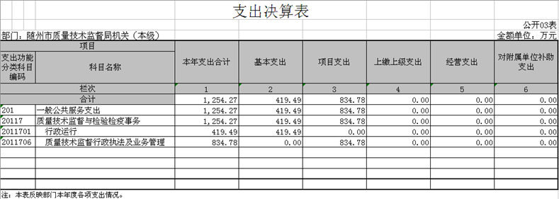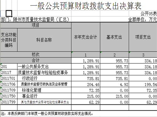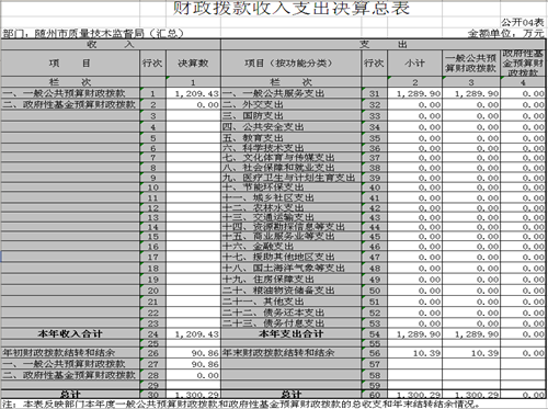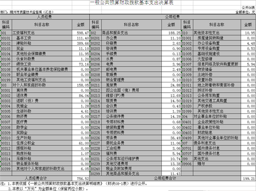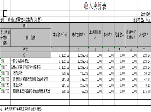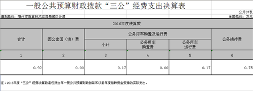 1、隨州市質量技術監督局(匯總)2016年度部門決算公開表