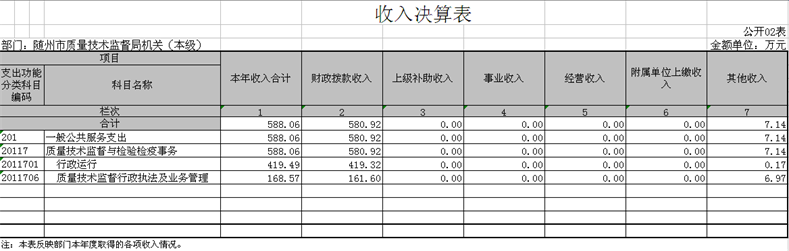 2、隨州市質量技術監督局機關2016年度單位決算公開表