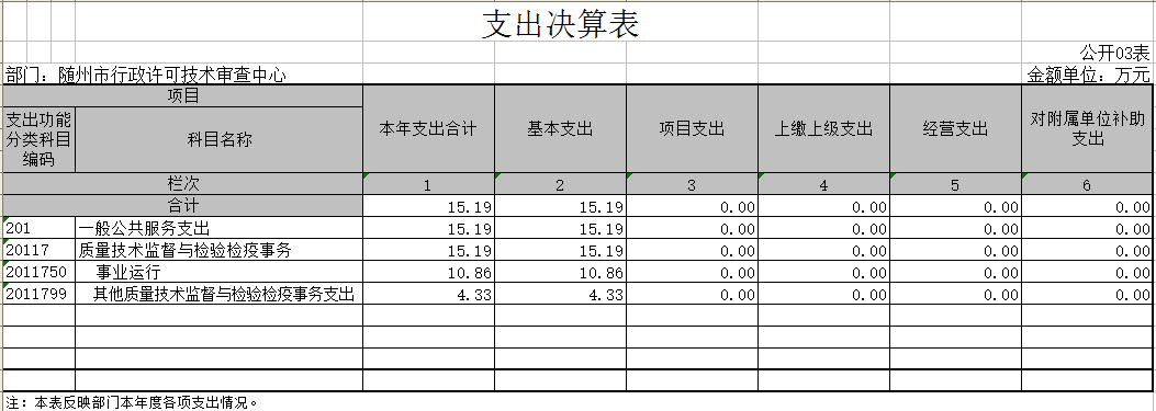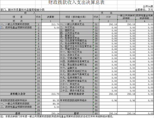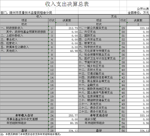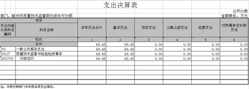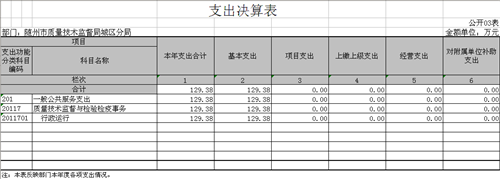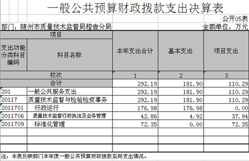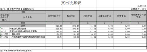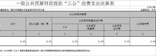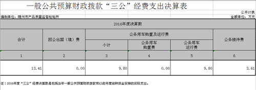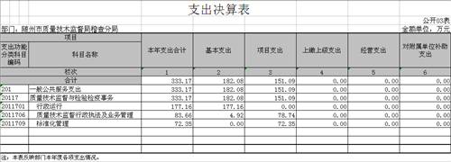 3、隨州市質量技術監督局稽查分局2016年度單位決算公開表