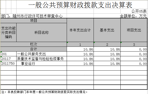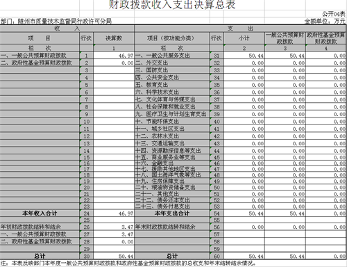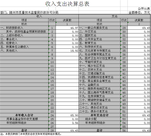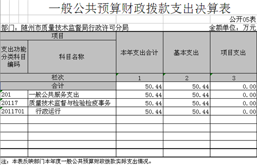 4、隨州市質量技術監督局行政許可分局2016年度單位決算公開表