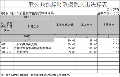 5、隨州市質量技術監督局城區分局2016年度單位決算公開表