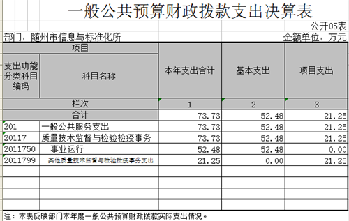 7、 隨州市信息與標準化所2016年度單位決算公開表