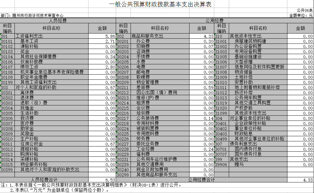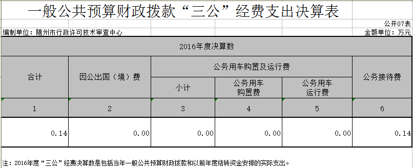 8、 隨州市行政許可技術審查中心2016年度單位決算公開表