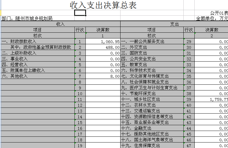 2、收入決算表