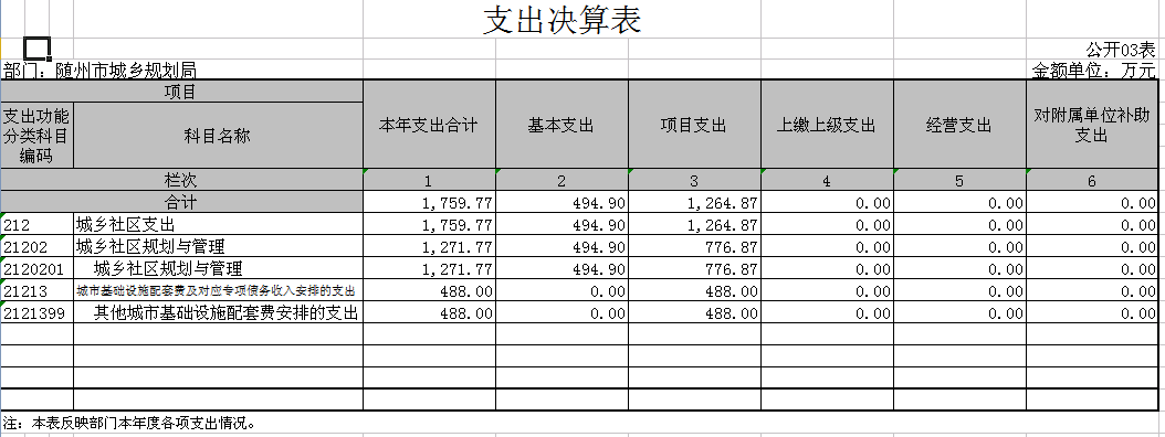 3、支出決算表