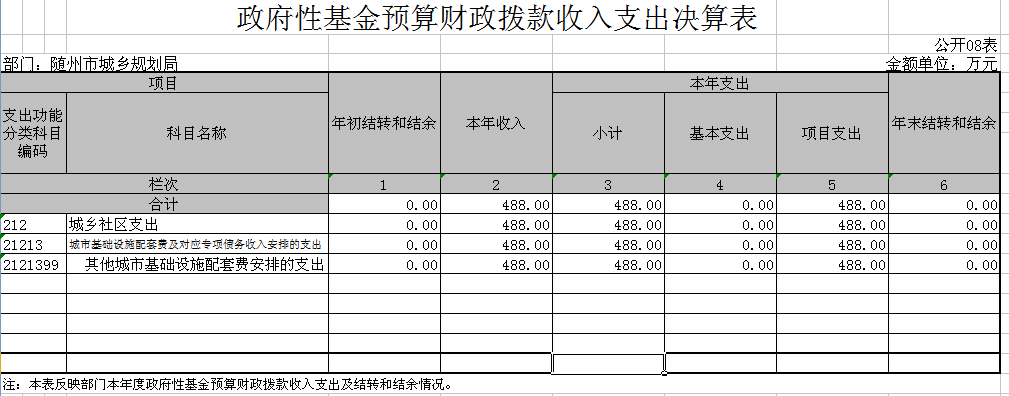 8、政府性基金預算財政撥款收入支出決算表
