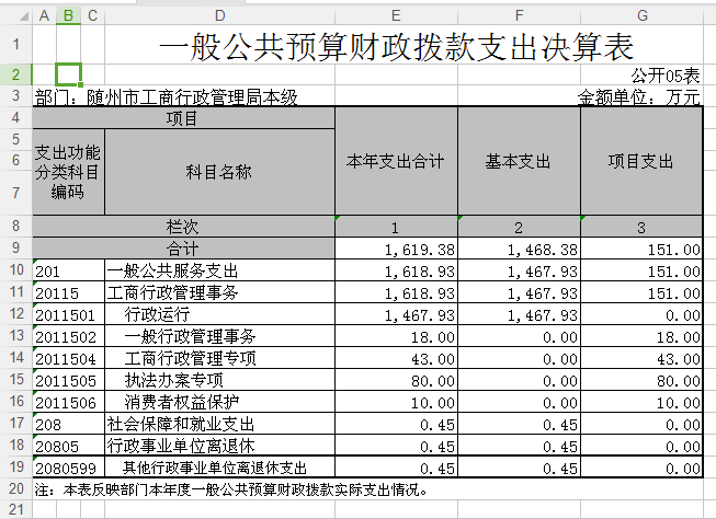 ??隨州市工商局本級2016年財政撥款支出年初預算為1572.26萬元,決算數為1619.38萬元,完成年初預算的103%,上升的主要原因是人員經費的增加。