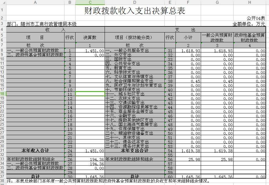 ??按功能分類科目分:一般公共服務支出年初預算數1572.26萬元;決算數為1619.38萬元,完成年初預算的103%。