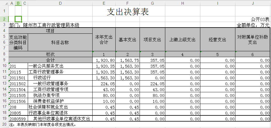 ??隨州市工商局本級2016年度支出總計1920.8萬元,比上年增長4%,上升的主要原因是人員工資調增。其中:基本支出1563.75,占81.41%;項目支出357.05萬元,占18.58%。
