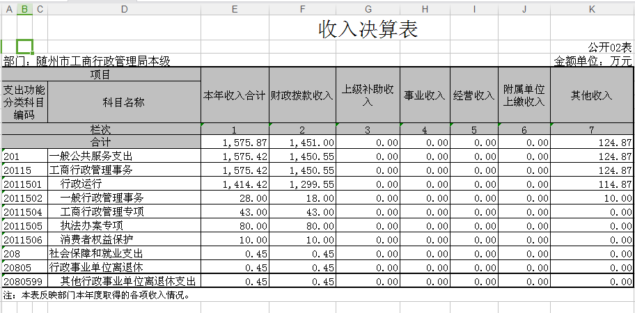 ??隨州市工商局本級2016年度收入總計1575.87萬元,與上年基本持平。其中:財政撥款1451萬元,占92.08%;其他收入124.87萬元,占8%。