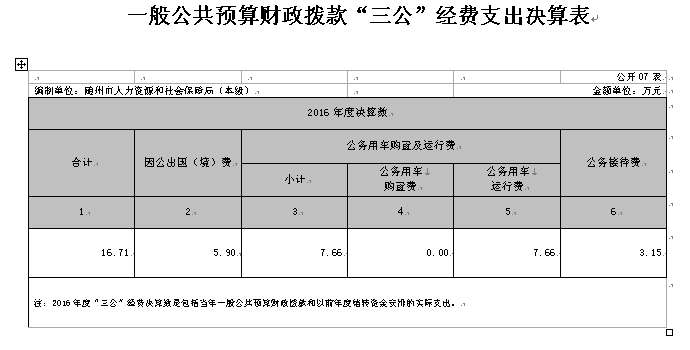 2016年“三公”經費支出16.71萬元,其中:因公出國5.9萬元,公務接待費3.15萬元,公車運行費7.66萬元。比年初預算25.21萬元減少8.5萬元,比2015年25.67萬元減少8.96萬元,公車改革、接待費用減少是主主要原因。