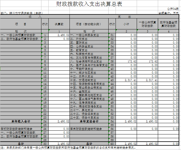 市交通運(yùn)輸局2016年度財政撥款收入總計2,490.02萬元,基本支出2,490.02