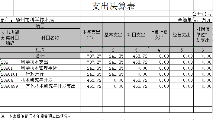 ??2016年支出707.27萬(wàn)元,其中:科學(xué)技術(shù)支出465.72萬(wàn)元,結(jié)余232.85萬(wàn)元。