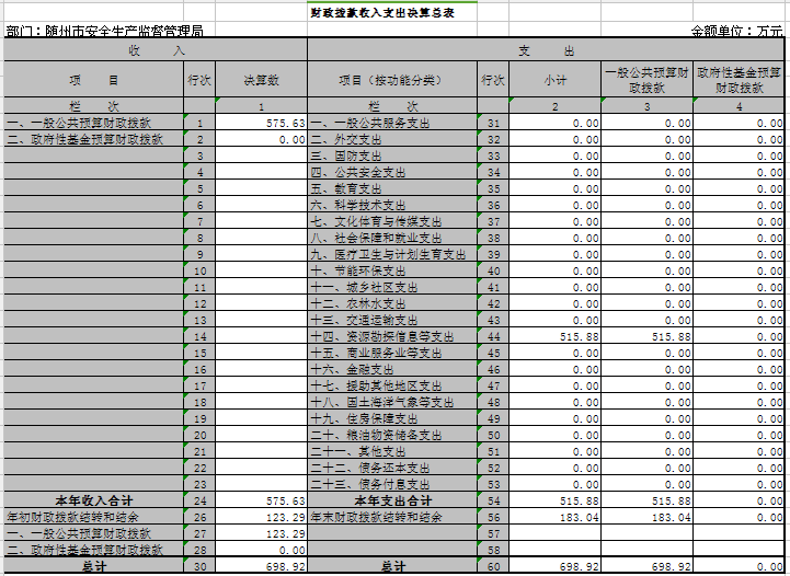 隨州市安全生產監督管理局收入支出預算執行情況分析