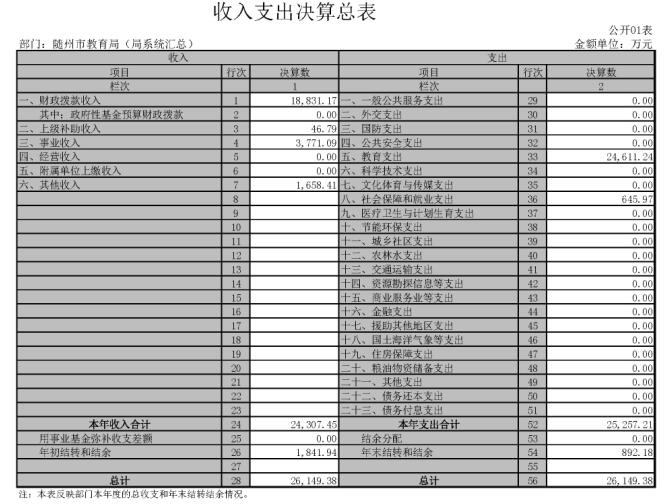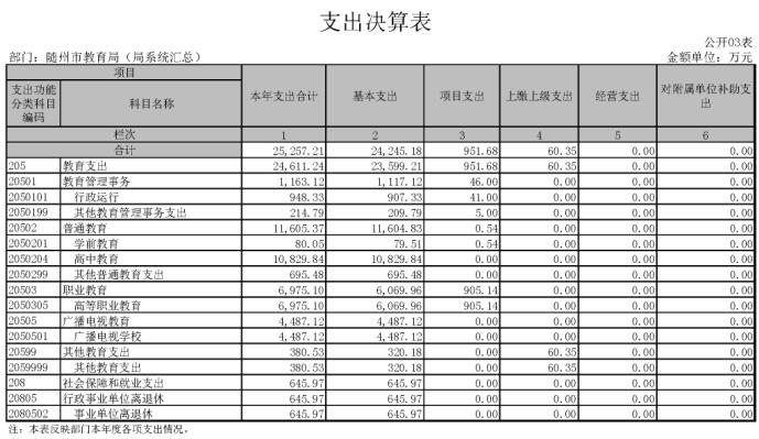 隨州市教育局2017年部門決算單位構(gòu)成為:教育局機(jī)關(guān)內(nèi)設(shè)機(jī)構(gòu)8個(gè):辦公室、政工人事科、規(guī)劃財(cái)務(wù)科、基礎(chǔ)教育科、職業(yè)教育與成人教育科、學(xué)校后勤保障與管理辦公室、法制與學(xué)校安全管理科、市教育督導(dǎo)辦公室。隨州市教育考試中心、隨州市教研室、隨州市電教館、隨州市中小學(xué)教師(校長)繼續(xù)教育中心、隨州市學(xué)生資助管理中心5個(gè)二級(jí)單位,隨州一中、隨州二中、湖北現(xiàn)代教育集團(tuán)、隨州市幼兒園4個(gè)直屬學(xué)校和隨州職業(yè)技術(shù)學(xué)院。