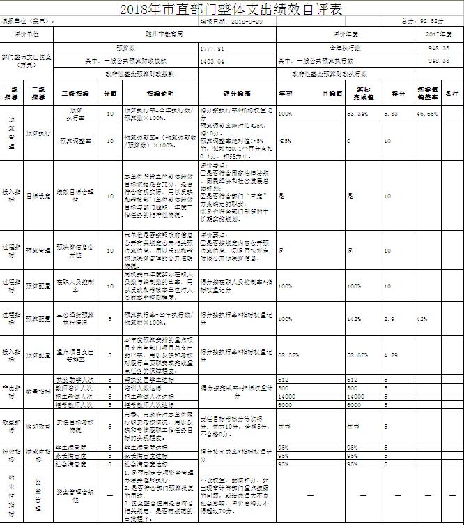 根據(jù)《市財(cái)政局關(guān)于2018年開展財(cái)政支出績效評(píng)價(jià)的通知》精神,我局成立了績效評(píng)價(jià)工作專班,結(jié)合教育實(shí)際制定了績效評(píng)價(jià)方案,通過建立指標(biāo)體系、收集資料、綜合分析等程序,形成績效自評(píng)報(bào)告。