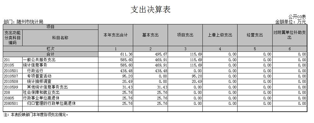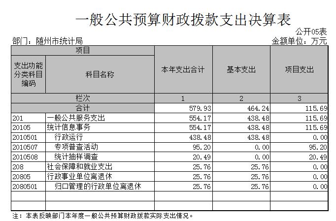 2017年財政撥款支出579.93萬元,比上年638.42萬元減少9.16%;比年初預算585.51萬元少0.95%。其中基本支出464.24萬元,比上年539.44萬元減少13.94%,原因是退休人員經費減少和公用經費的大幅壓縮;項目支出115.69萬元,比上年98.98萬元增加16.88%,原因是第三次全國農業普查深入開展,經費開支增加。