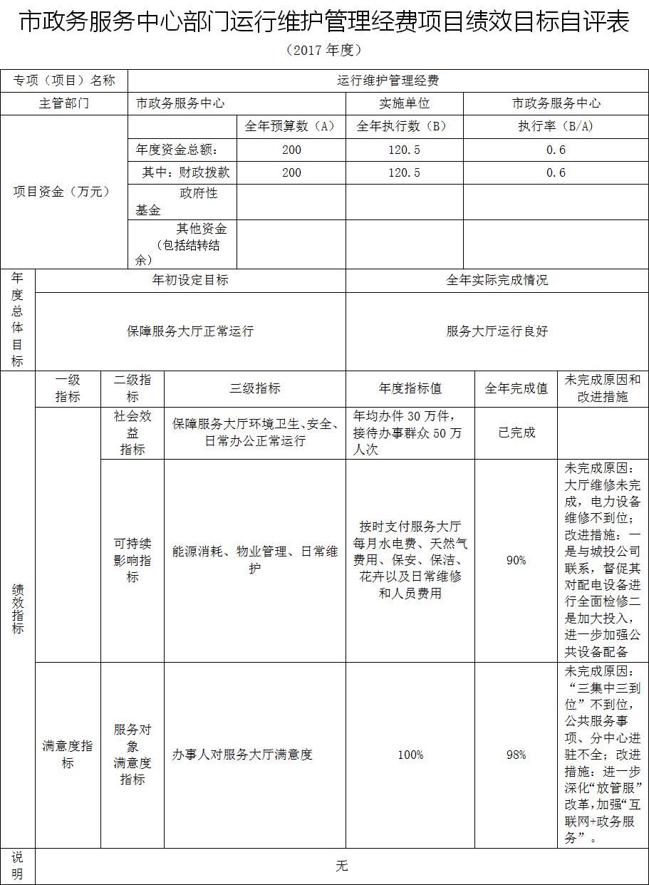 市政務服務中心運行管理經費2017年度績效自評報告(參考題綱)