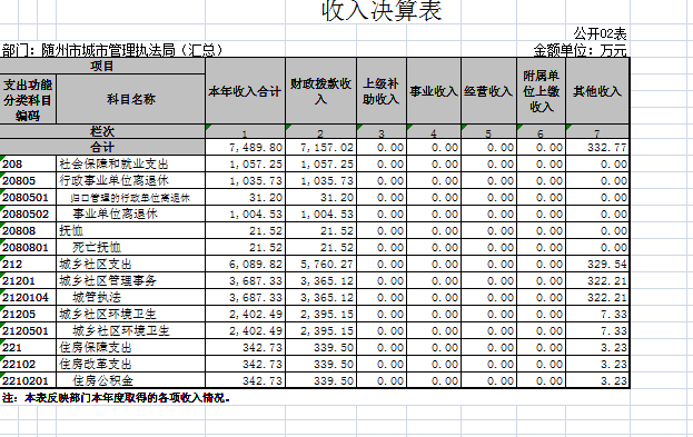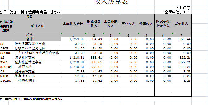 ??2017年我局本級決算收入為1259.87萬元,其中財政撥款收入934.43萬元,比去年增加了23.62%,主要是正常增資;其他收入325.44萬元,增加的是城管執法322.21,主要是增加的調資補發工資,住房公積金增加了3.23萬元。