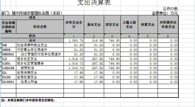 ??我局本年支出為1063.78萬元,較上年增加了0.5%,主要用于人員工資、公用經費和社會保障繳費的支出。