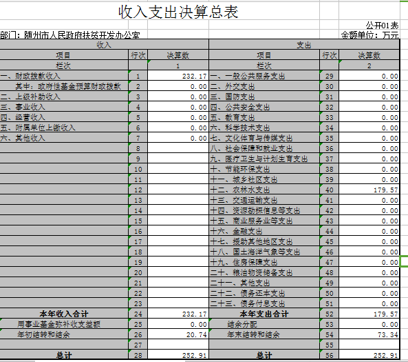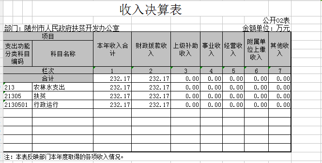 隨州市人民政府扶貧開發(fā)辦公室2017年部門決算公開信息