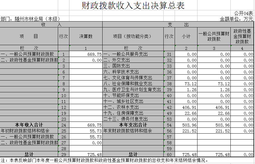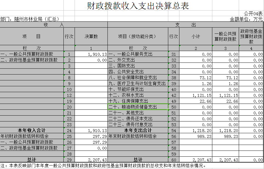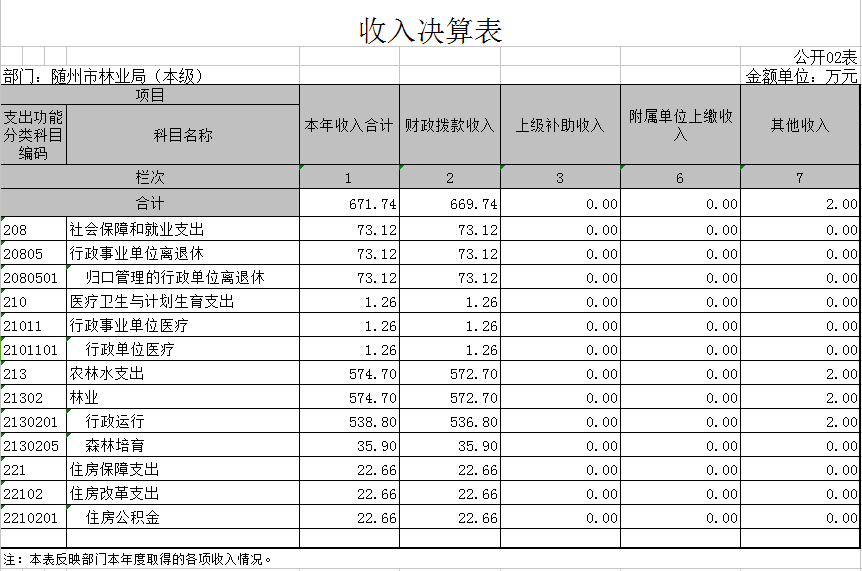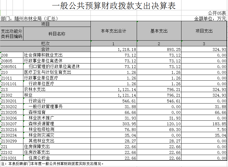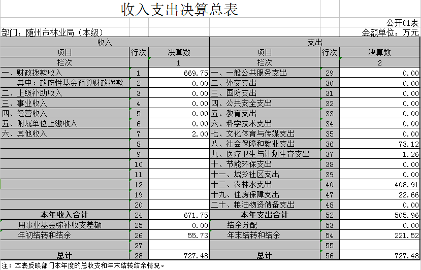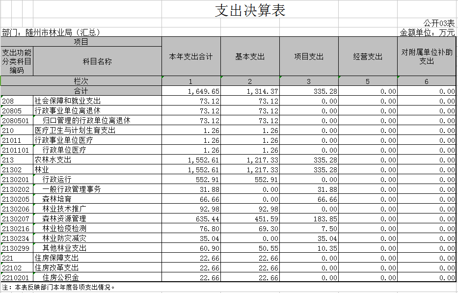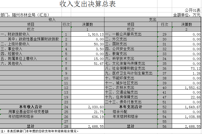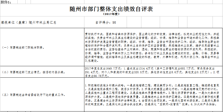 一、隨州市林業(yè)局2017年部門決算表(匯總)