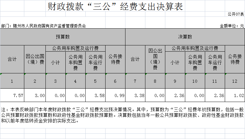6、“三公”經費:按照有關規定,"三公"經費包括因公出國(境)費、公務接待費、公務用車購置及運行費。