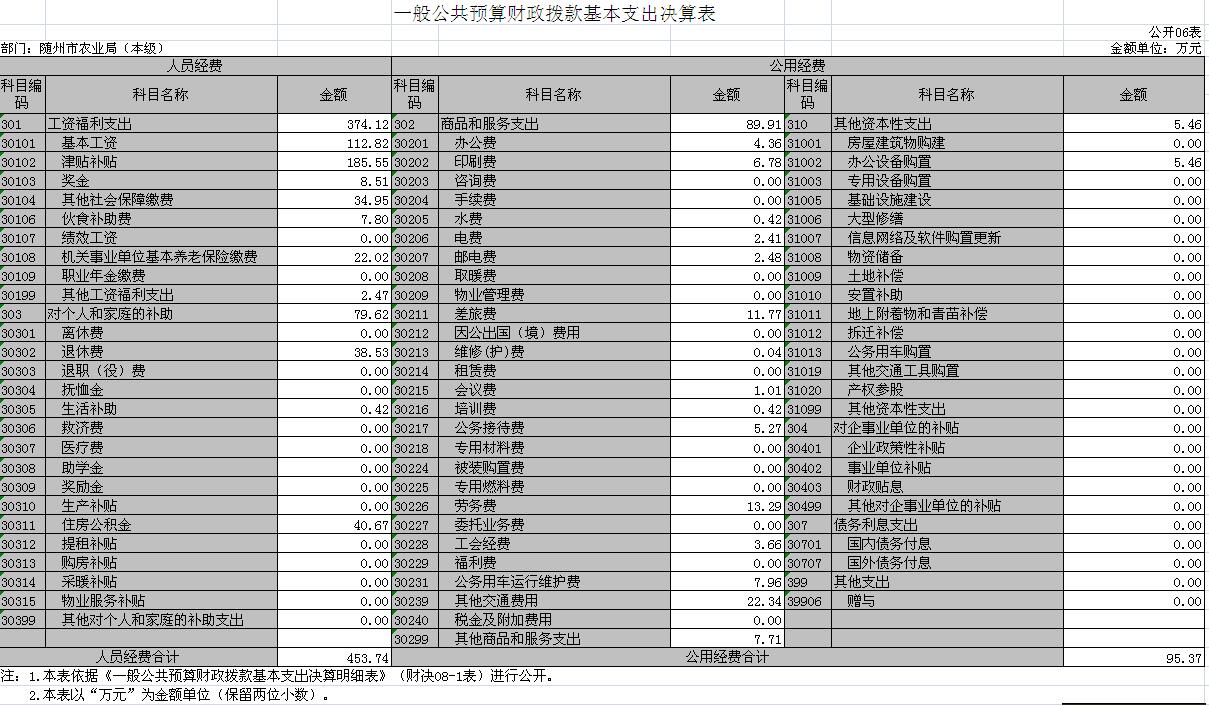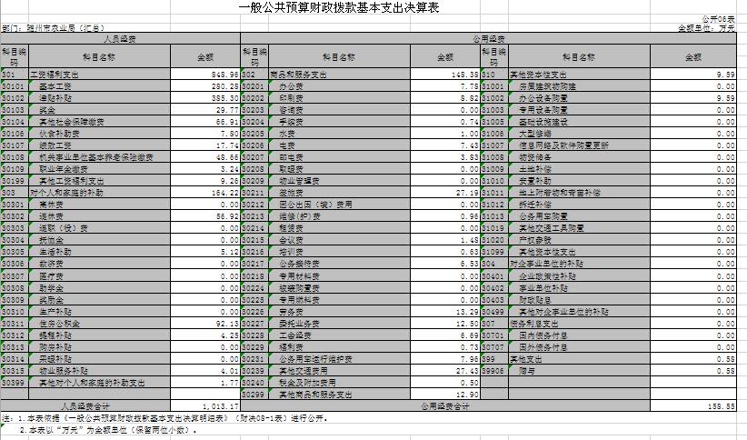 六、一般公共預(yù)算財(cái)政撥款基本支出決算表