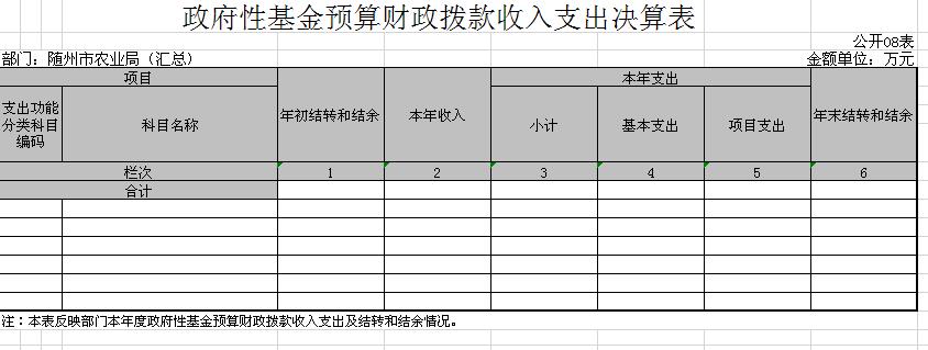 隨州市農(nóng)業(yè)局(匯總)2017年無(wú)政府性基金預(yù)算和支出。