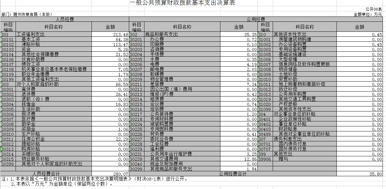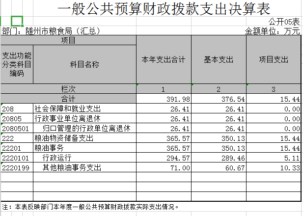 1、隨州市糧食局(匯總)2017年度部門決算公開表