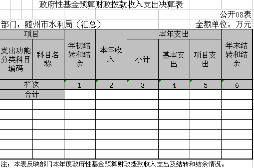 隨州市水利局(匯總)無(wú)政府性基金預(yù)算。隨州市水利局(本級(jí))無(wú)政府性基金預(yù)算。年初預(yù)算無(wú)政府性基金收入,上年決算也無(wú)政府性基金收入。