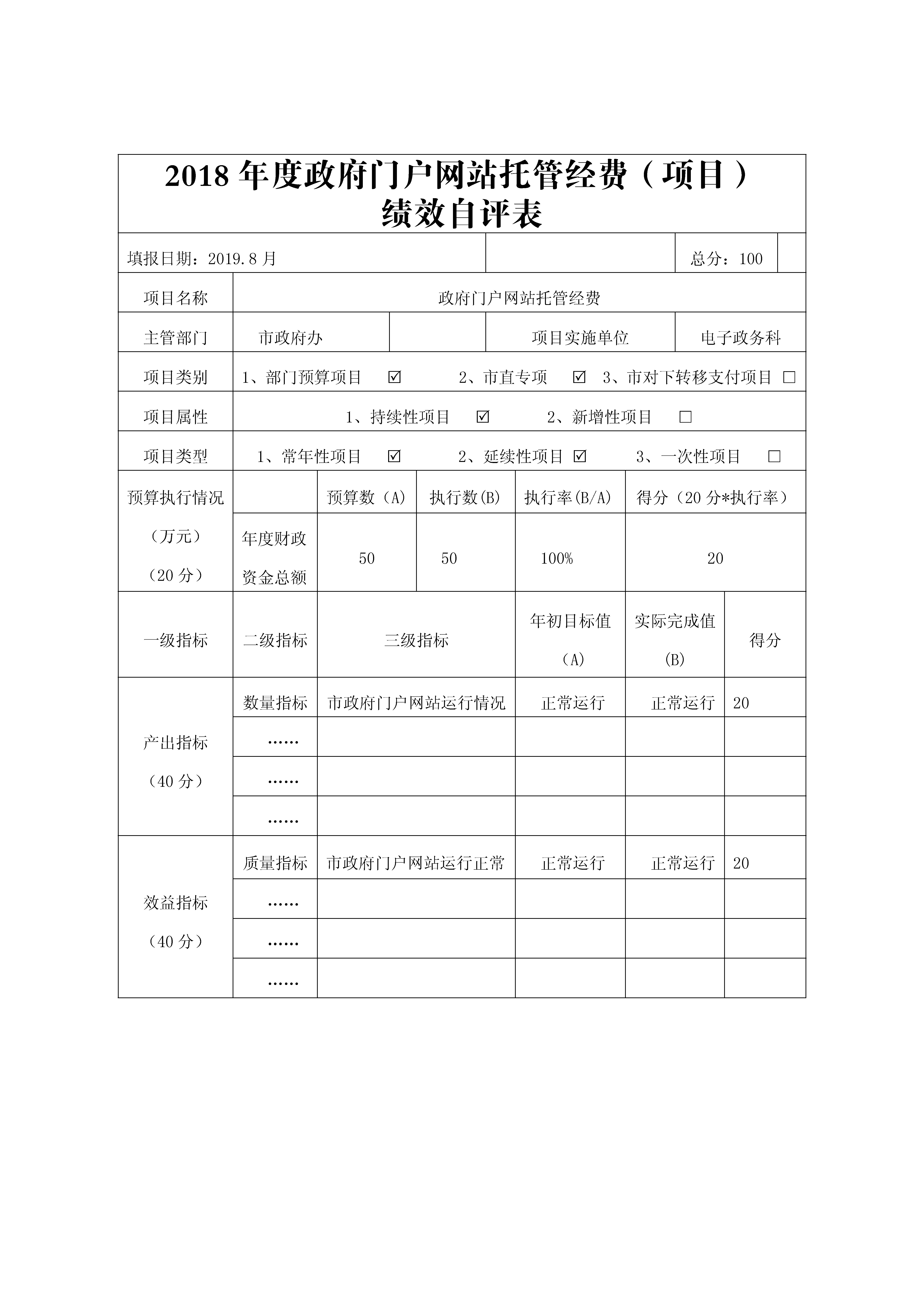績(jī)效自評(píng)工作開(kāi)展情況:政府門(mén)戶網(wǎng)站托管費(fèi)用資金及時(shí)到位,執(zhí)行科學(xué)規(guī)范。
