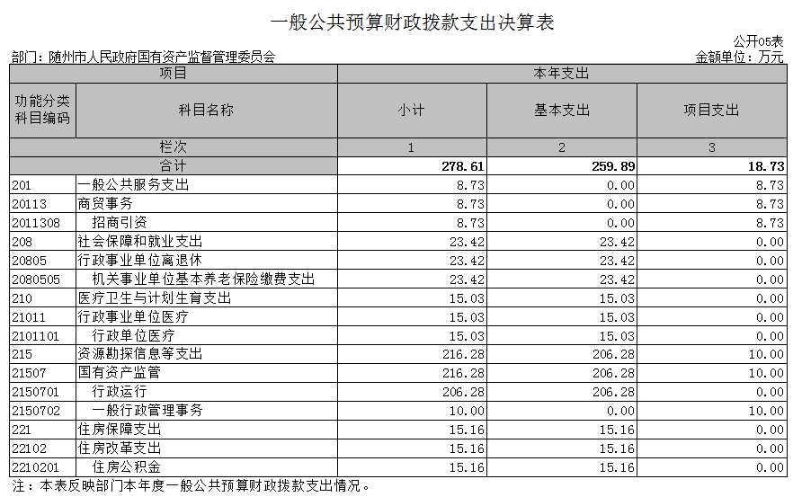 ??國資監管經費10萬元,截止2018年12月31日,10萬元國資監管經費無結余。需要說明的是,按照隨招商委[2018]1號文件,市政府2018年安排市國資委招商分局專班工作經費10萬元,實行招商專款專用,截止2018年12月31日,10萬元招商分局專班工作經費結余12735.8元,財政局已在2019年度統籌收回。