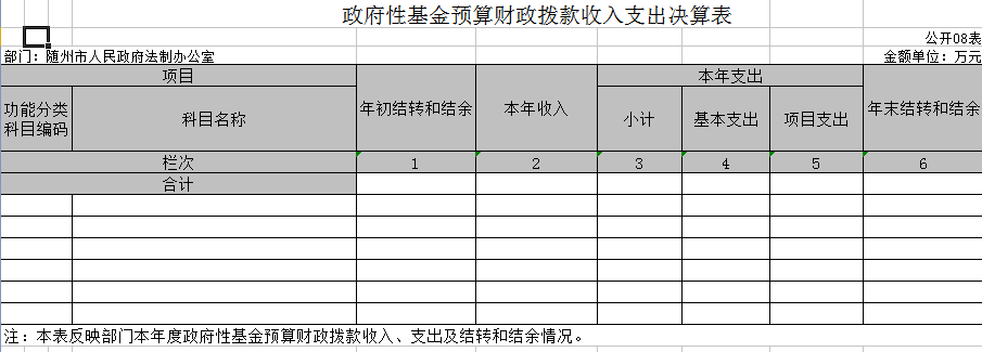 2018年度,市政府法制辦因無政府性基金,所以“政府性基金預算財政撥款支出決算表”無數據。