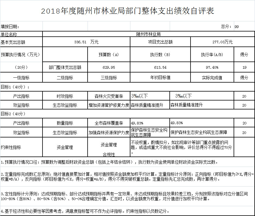 五、2018年度隨州市林業局部門整體支出績效自評表(附后)