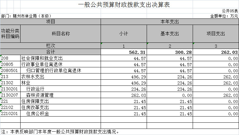 隨州市林業局下設市森林公安局、林業技術推廣中心(林業調查規劃設院)、森林病蟲害防治檢疫站、林木種苗管理站、隨城山森林公園管理處、國有大洪山林場6個二級單位。下設單位財務均獨立核算并納入財政預算管理,2018年決算公開情況見隨州市林業局網站。市直林業部門實有人數243人,在職134人,行政編制24人,行政工人2人,事業編制37人,事業在職編外73人,以錢養事2人,自聘8人,離休2人,退休107人。