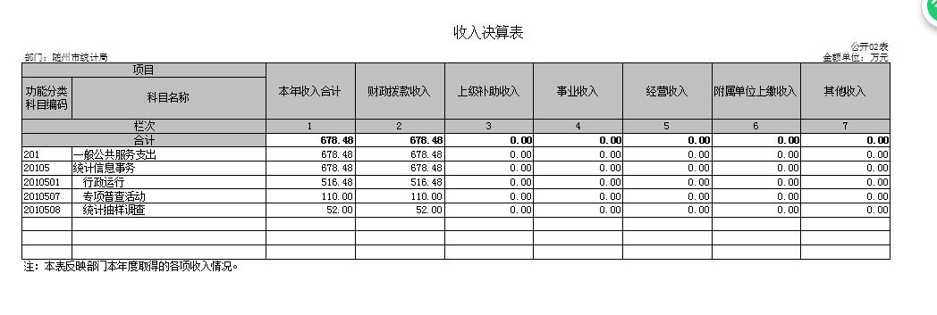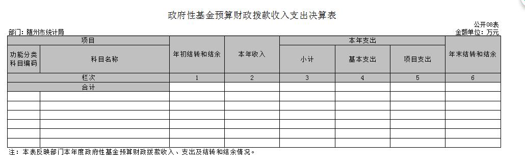 說明:本年度市統計局無政府性基金預算財政撥款收支