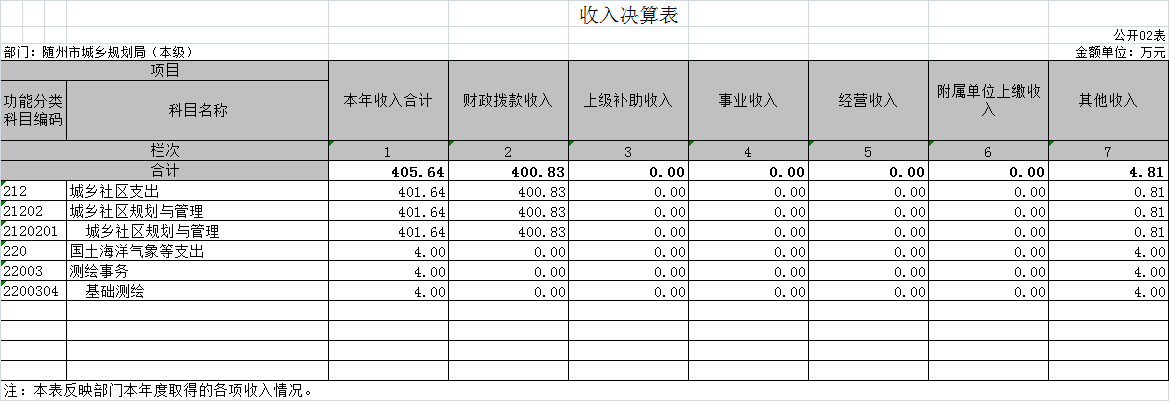 依據《中華人民共和國預算法》、《市財政局關于批復2018年度部門決算的通知》(財預[2018]143號)和《市財政局關于做好2018年度市級部門決算信息公開工作有關事項的通知》(隨財函[2018]144號)要求,現對我局2018年部門決算公開如下: