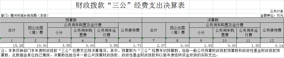 七、一般公共預算財政撥款“三公”經費支出決算表